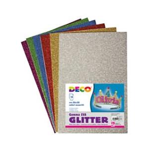 DECO Gomma Crepp Glitter 20x30 cm - 10 fogli colori assortiti, morbida e resistente
