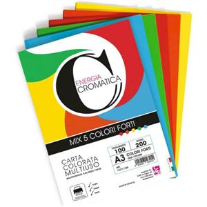 DECO Carta Colorata Cromatica A3 200 gr - 100 Fogli in 5 Colori Forti Assortiti