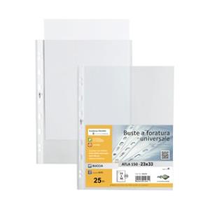 SEI Rota Buste forate Atla 150 - 23x33 cm - Polipropilene trasparente - Spessore alto - Conf. 25 pezzi