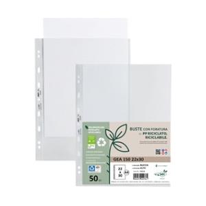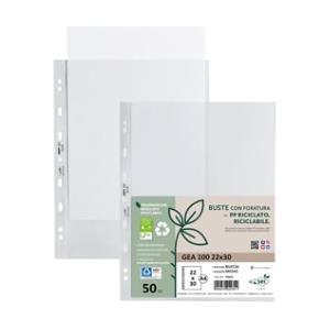 Sei Rota Buste forate Gea 150 - PP riciclato trasparente 22x30 cm - alto spessore - confezione da 50 pezzi