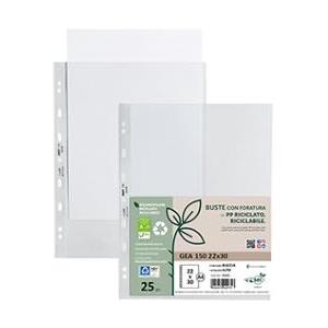 Sei Rota Buste forate Gea 150 - PP riciclato trasparente 22x30 cm - alto spessore - confezione da 50 pezzi in Scuola e Cancelleria