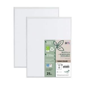 Sei Rota Buste a U Gaia in Polipropilene Riciclato - Trasparenti - 22 x 30 cm - Alto Spessore - Confezione da 25 Pezzi