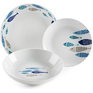 Excelsa Servizio Piatti Porcellana Decorata North Sea - 18 Pezzi per Fino a 6 Persone