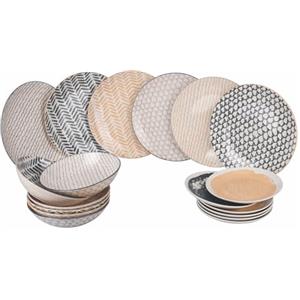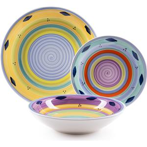 Excelsa Servizio Piatti Esprit in Ceramica Multicolore, 18 Pezzi per 6 Persone, Lavabile in Lavastoviglie e Adatto al Microonde
