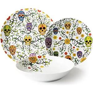 Excelsa Calavera Servizio Piatti 18 Pezzi in Porcellana con Design Colorato per Fino a 6 Persone