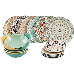 Villa d'Este Home Tivoli Sharm Servizio Tavola 18 Pezzi in Porcellana Multicolor per 6 Persone con 6 Differenti Decori