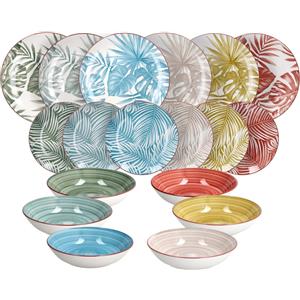 H&H Servizio di Piatti da Tavola 18 Pezzi in Porcellana Dura Multicolore per 6 Persone