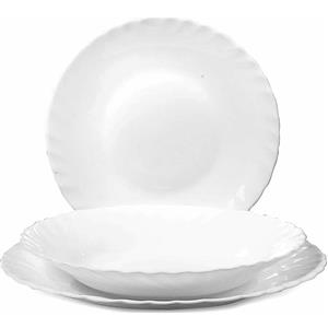 Bormioli Rocco Servizio di Piatti Prima 18 Pezzi in Vetro Opale Bianco - Adatto al Microonde e Lavabile in Lavastoviglie
