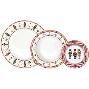 Excelsa Servizio Piatti Nutcracker 18 Pezzi in Porcellana per 6 Persone con Design Natalizio