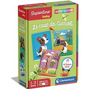 Clementoni Sapientino Baby Montessori - Flashcards Educative Le Case dei Cuccioli, 48 Carte Tattili per Riconoscere Animali e Habitat, per Bambini 1-3 Anni, Made in Italy in Giochi educativi e costruzioni