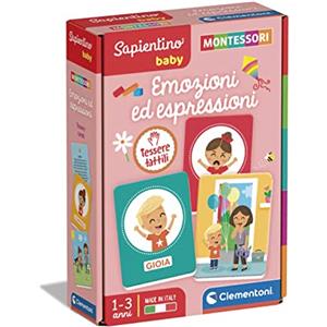 Clementoni Sapientino Baby Montessori - Carte Emozioni ed Espressioni, Flashcards Tattili, Bambini 1-3 Anni, Gioco Educativo per Riconoscere e Associare Emozioni, Made in Italy, Lingua Italiana, 16435
