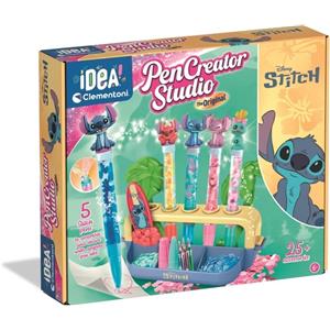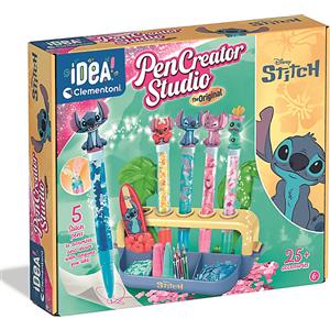 Clementoni Idea - Laboratorio delle Penne Disney Stitch, Kit Creativo per Bambini 6+ Anni, con 25+ Accessori e 5 Penne Personalizzabili con Personaggi, Lingua Italiana, 18204
