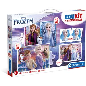 CLEMENTONI, Disney, DISNEY PRINCESS CLEMENTONI - 18292 - EDUKIT 4 IN 1 FROZEN CON UN PUZZLE DA 30 PEZZI E UNO DA 48, UN MEMO E SEI CUBI