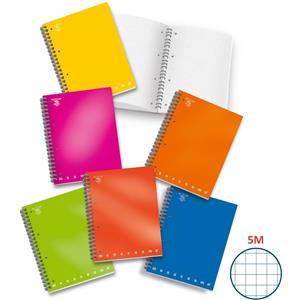 Pigna Maxiquaderno Monocromo A4 - 100 Fogli - 80g - Quadretto 5mm - 4 Fori - Spiralato - Conf. 5 Pezzi