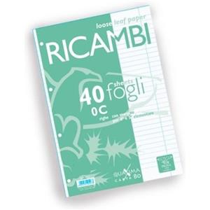 Pigna Ricambi A4 Quaxima con Banda Rinforzata, 40 Fogli, Carta 80g/m², Rigatura 0C