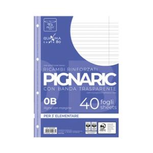 Pigna Ricambi Pignaric A4 80g/mq 1R Rinforzati con Banda Trasparente - Confezione da 40 Fogli