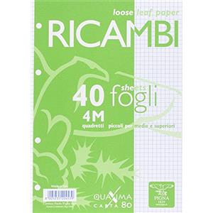 Pigna Ricambi Forati Quaxima A5 - 40 Fogli Bianchi 80 g/m² con Rigatura 4 mm
