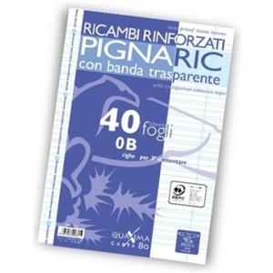 Pigna Ricambi Pignaric A4 80g/mq 1R Rinforzati con Banda Trasparente - Confezione da 40 Fogli