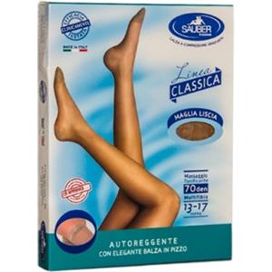 DESA PHARMA Srl Sauber Classico Calza Autoreggente Maglia Liscia 140 Denari Nero Taglia 3 con Balze in Pizzo e Silicone in Prodotti Ortopedici
