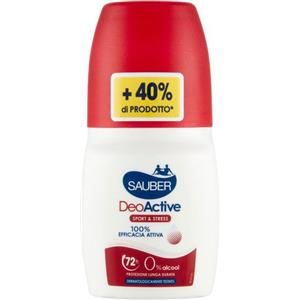 Sauber DeoActive Roll-On 70 ml - Deodorante Sport & Stress, Protezione Fino a 72 Ore, Senza Alcool, Resistente all'Acqua