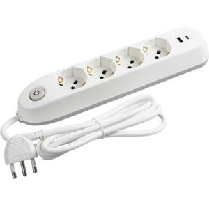 BTICINO Ciabatta Multipresa Elettrica Poker con 6 Posti, 2 Prese USB, 4 Prese Polivalenti (Schuko 10/16A e Bipasso), Interruttore, Cavo 1,5m, Spina 16A, Bianco