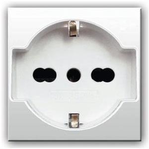 Ettroit Presa Schuko 2P T 10/16A 250V Bianca Compatibile Bticino Axolute - Interasse 19mm e 26mm