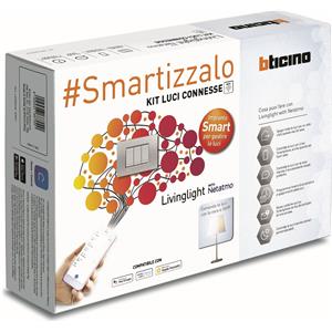 BTicino Kit Luci Connesse Living Now Smart - Controllo tramite App, Alexa, Google e Siri, con Gateway e 3 Deviatori