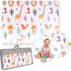 Family Nation Tappeto Gioco Pieghevole Montessori 2 in 1 - Morbido, Reversibile e Antiscivolo, 180x150cm, Fantasie Animal Friends