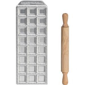 IMPERIA Raviolamp Stampo per 24 Ravioli in Alluminio e Legno, Facile da Usare per Pasta Fresca in Tavola e Cucina