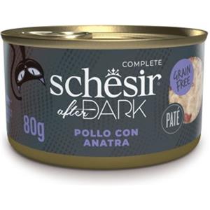 Schesir After Dark Paté di Pollo e Anatra - 80 g - Alimento Umido Completo per Gatti Adulti, Ricco in Proteine e Grain Free