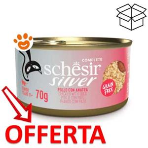 Schesir Silver Senior Cat - Filetti di Pollo e Anatra in Mousse e Filetti - Lattina da 70 g
