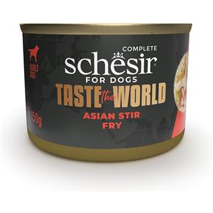 Schesir Taste the World - Cibo Umido per Cani Adulto con Pollo, Riso Integrale e Ortaggi - Asian Stir Fry - Lattina da 150 g