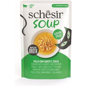 Schesir Zuppa per Gatti con Filetti di Pollo, Carote e Zucca - 12 Buste da 40g, 100% Naturale e Grain Free
