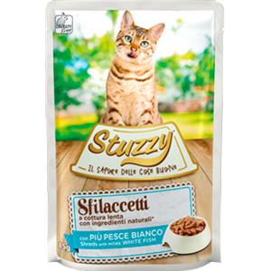 Stuzzy Sfilaccetti con Pesce Bianco 85g - Cibo Umido Naturale per Gatti Adulti