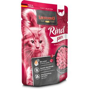 Leonardo Cibo Umido per Gatti - Manzo Puro - 16x85g - Senza Cereali - Alimento Completo in Busta Monoporzione