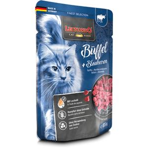 Leonardo Cibo Umido per Gatti Adulti - 16x85g Bufalo e Mirtilli, Senza Cereali e Zucchero, Alimento Completo in Busta Monoporzione