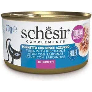 Schesir Tonnetto con Pesce Azzurro in Brodo - Alimento Umido Naturale per Gatti Adulti - Lattina da 70g
