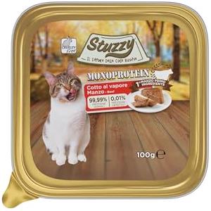 Stuzzy Monoprotein Manzo - Cibo Umido per Gatti 100g, 99,9% Proteine Animali, Cotto a Vapore, Senza Glutine in Alimenti Cani e Gatti
