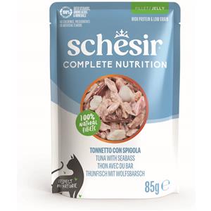 Schesir Complete Nutrition Filetti in gelatina 6 x 85 g in buste - Tonnetto con spigola