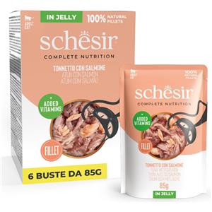 Schesir Complete Nutrition Filetti in gelatina 24 x 85 g in buste - Tonnetto con salmone