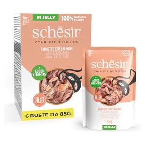 Schesir Cibo Umido per Gatti Adulti - Tonnetto con Salmone in Gelatina - 85g in Alimenti Cani e Gatti