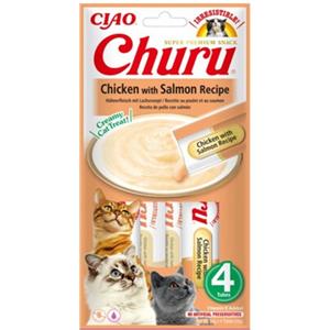 INABA Churu Snack Cremoso per Gatti al Pollo e Salmone - 4 Stick da 14g, Alimento Naturale e Senza Conservanti