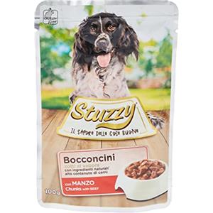 Stuzzy Bocconcini con Manzo per Cani Adulti - 100g, Cotti al Vapore con Ingredienti Naturali e Alto Contenuto di Carni in Alimenti Cani e Gatti