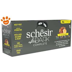 Schesir After Dark Cibo Umido per Gatti - Multipack 12x80 g - Paté con Pollo, Pollo e Anatra, Pollo e Manzo, Pollo e Uova di Quaglia - 100% Completo e Bilanciato