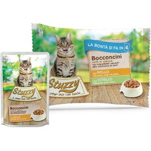Stuzzy Cat Bocconcini Pollo e Vitello - Cibo Umido Naturale per Gatti - Multipack 4x85g