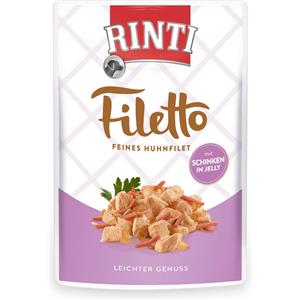 RINTI Filetto in Jelly Pollo e Prosciutto - Cibo Umido per Cani Adulto in Gelatina 100 g
