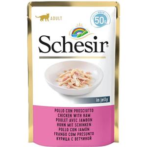 Schesir Filetti di Pollo con Prosciutto in Gelatina 50g - Alimento Umido Naturale per Gatti Adulti