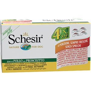 Schesir Multipack per Cane confezione da 4 pezzi x 85gr Gusto Filetti di Pollo e Prosciutto
