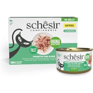 Schesir Complements in Gelatina - Alimento Umido per Gatti Adulti, 6 x 70 g con Tonno e Alghe