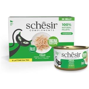 Schesir Complements in Gelatina 6x70g - Pollo con Prosciutto per Gatti Adulti in Alimenti Cani e Gatti